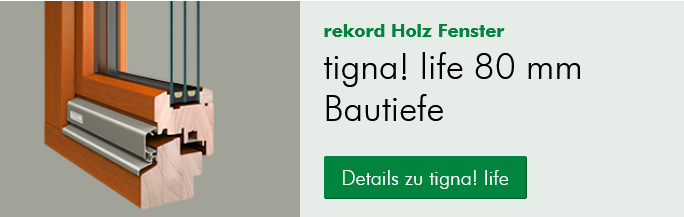 Mit unserer neuesten Holzfenster-Generation tigna! life bieten wir Ihnen höchste Flexibilität. Die Bautiefe von 80 mm bietet Funktionsgläsern (Wärme-/ Schallschutz) genügend Platz für Ihren persönlichen Bedarf. Das Holzfenster erfüllt somit alle Anforderungen für Ihr Bauvorhaben.